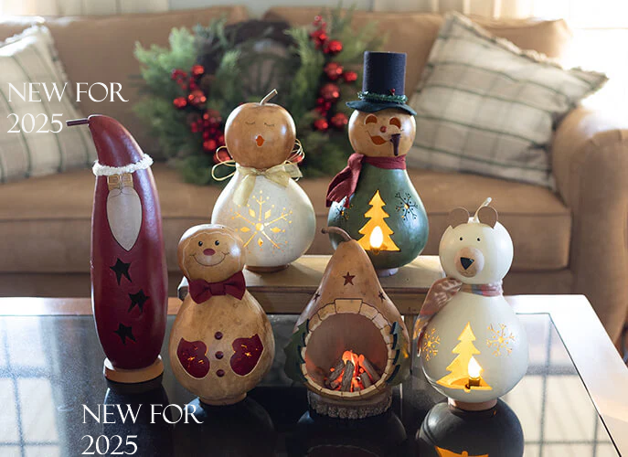 The Medium Projects this year include a gingerbread man, snowmen, bears, angels, santa pants bowl and reindeer. The medium gourd heads that you can mix and match include the reindeer, angel, bear, gingerbread man and snowman. The medium gourd bodies that you can choose from are a snowflake, tree/snowflakes, Christmas tree, nativity scene and mittens. The Medium Projects can be lit with an electric light for an additional charge ($5.00).
