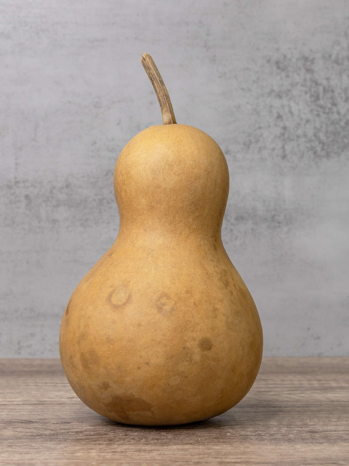 The head of a bottle gourd is half the size of the bottom and in between it has a short neck. Bottles have bottoms that sit - sometimes sanding is required.